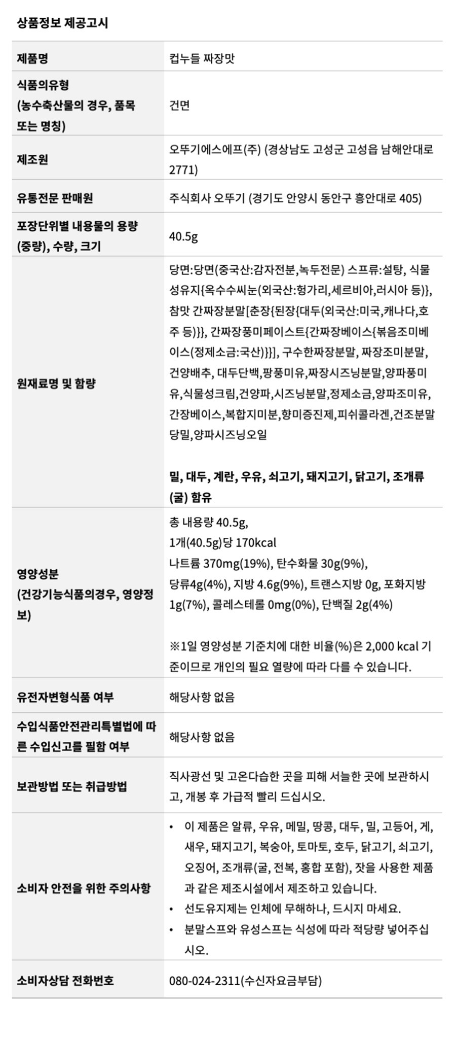 [오뚜기] 컵누들 짜장맛 40.5g