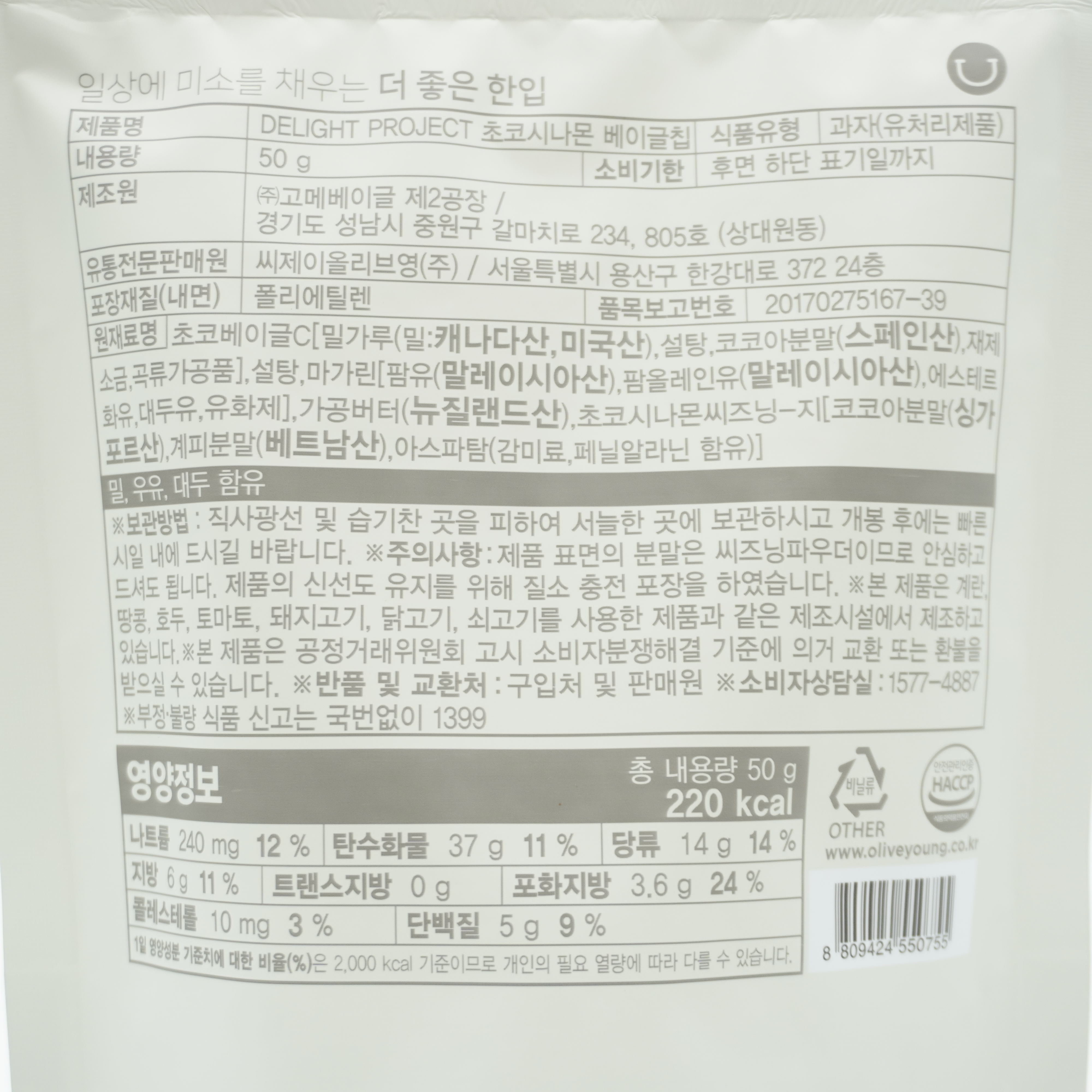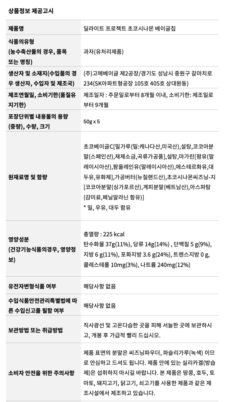 딜라이트 프로젝트 초코시나몬 베이글칩 50g x 5